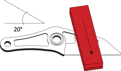 Η κινητή λεπίδα είναι τοποθετημένη σε μία έκκεντρη θέση. Aυτό επιτρέπει το κλαδί να συρθεί προς το υπομόχλιο αποφεύγοντας πιθανή ολίσθηση.