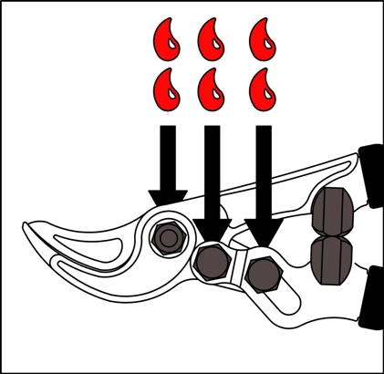 6. When the branch cutter is not used for long periods, protect the steel surfaces with a light film of oil.