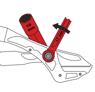 c. Use a n° 17 wrench to tighten the central nut