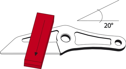 Η κινητή λεπίδα είναι τοποθετημένη σε μία έκκεντρη θέση. Aυτό επιτρέπει το κλαδί να συρθεί προς το υπομόχλιο αποφεύγοντας πιθανή ολίσθηση.