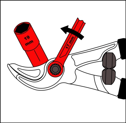 d. Turn the n° 17 wrench and branch-cutter simultaneously ( the same way as the arrow ) until the blades are able to rotate.